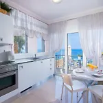 - ❓Is there a kitchen available at Sunset apartment for guest use?Yes, Sunset apartment is equipped with a fully furnished kitchen and offers an electric kettle, a fridge and a stovetop as well.